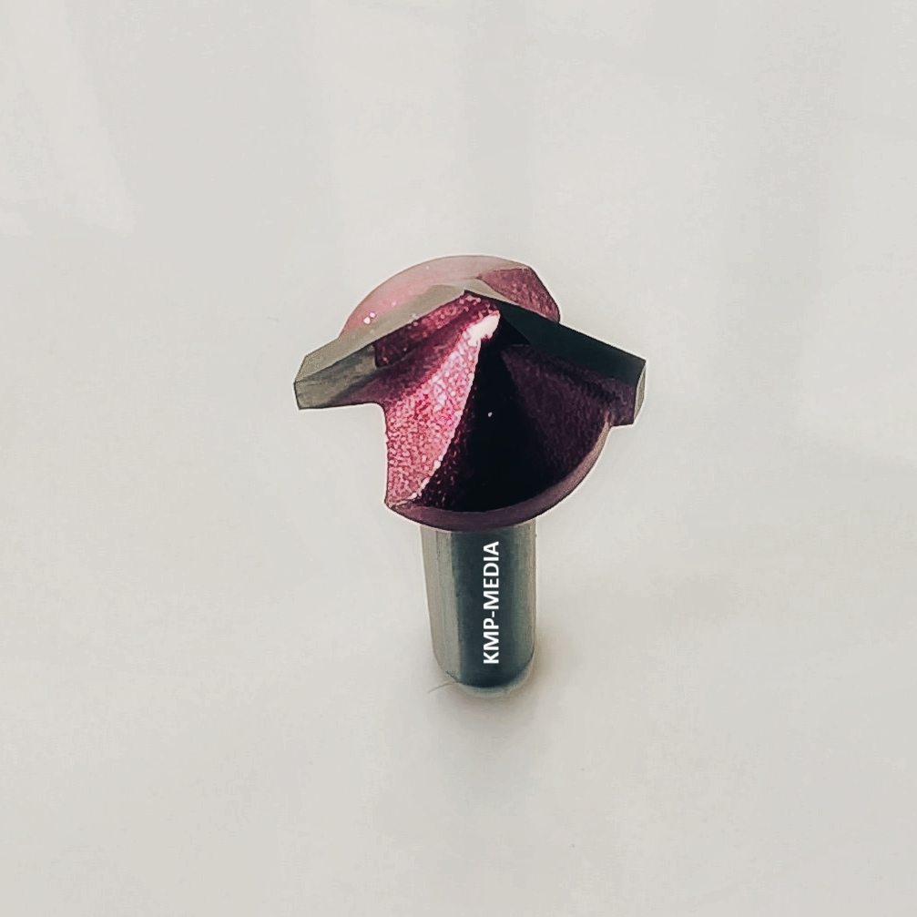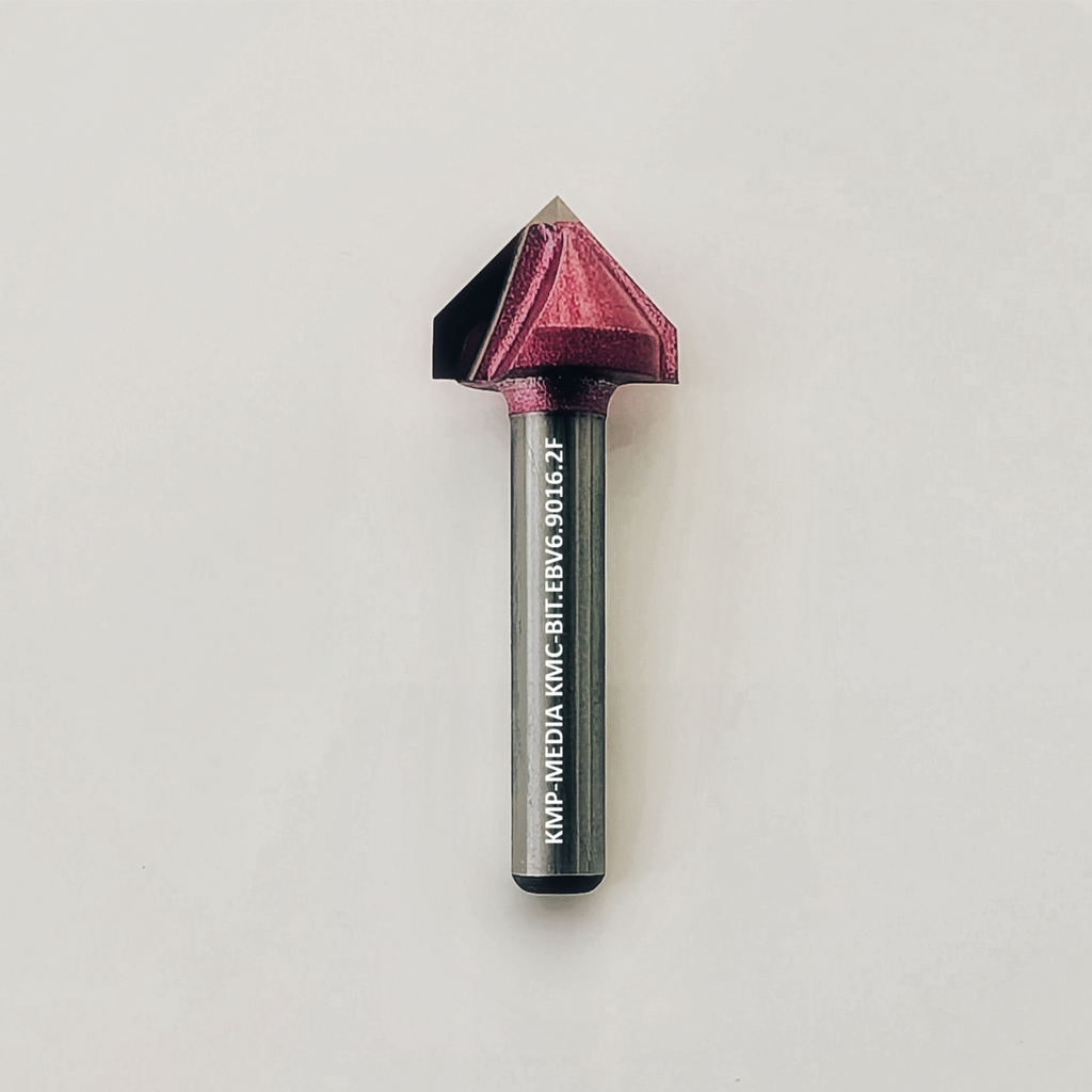 V-Shape/Groove Router Bit, Double Flutes, right-hand spiral (Up Cut) router bit with a 10mm cutting edge diameter and max milling depth of 8mm. Angle: 45 Degree